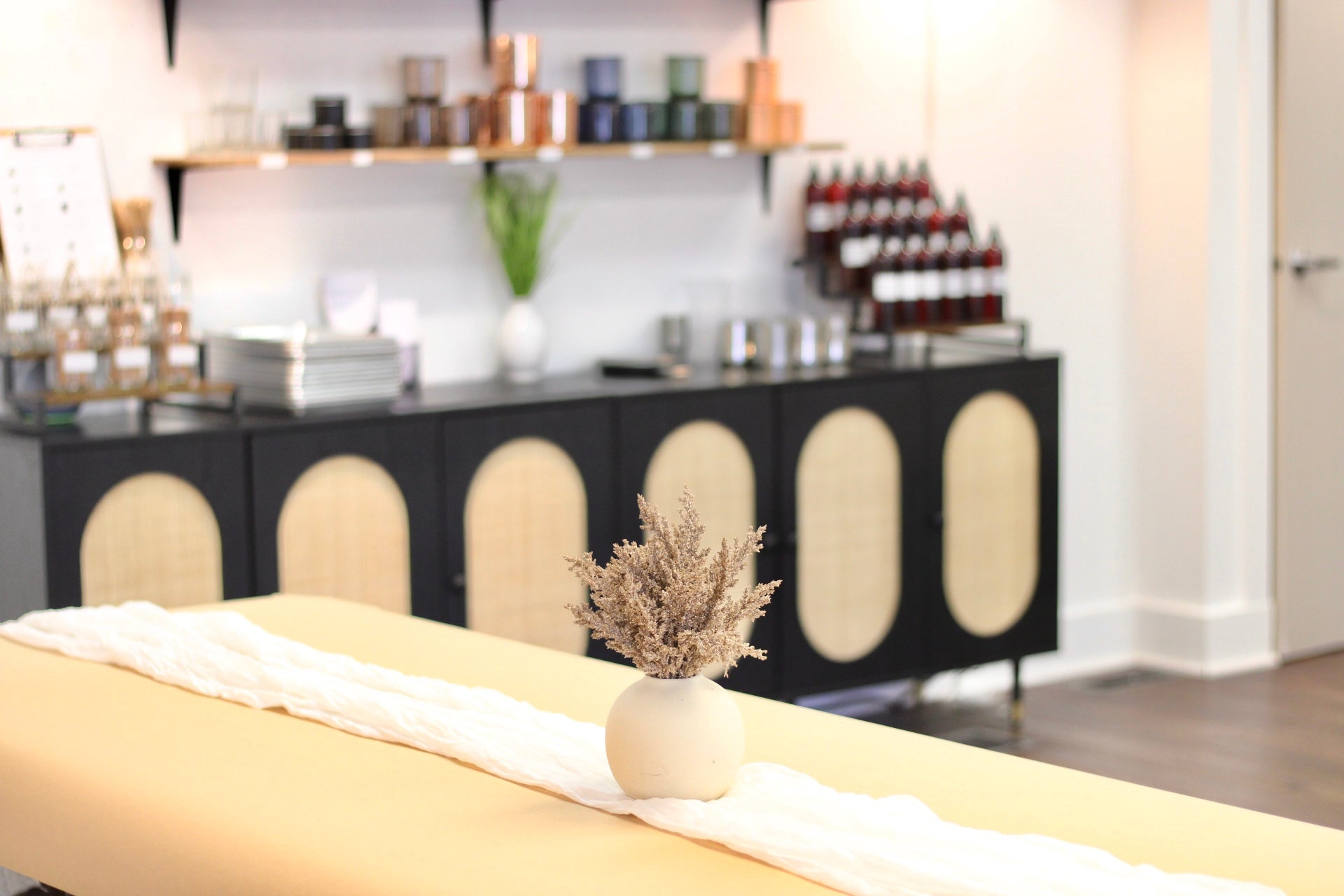We offer curated experiences including our bespoke candle bar, botanical bath soak + body oil mixing, and private events that spark connection and self-expression.