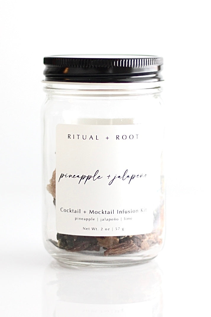 Ritual + Root Cocktail + Mocktail Infusion Kits are thoughtfully curated blends of botanicals, fruits, herbs, and spices designed to infuse directly into your favorite spirit — or into water, sparkling water, or tea for a non-alcoholic option.